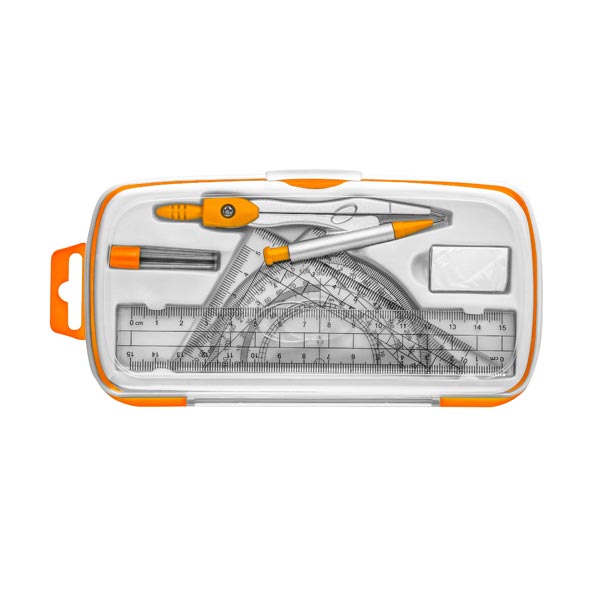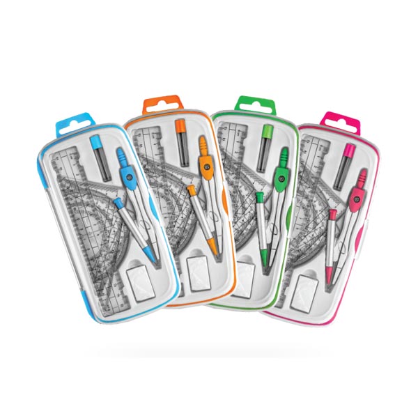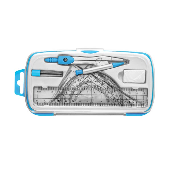 ست پرگار 7 تکه به همراه ۲ عدد گونیا، خط کش، نقاله، پاک کن و مغز اتود